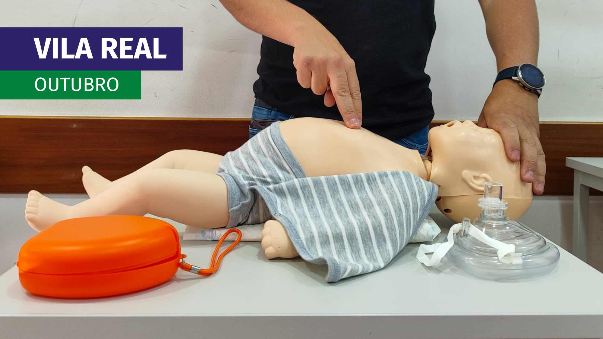 Vila Real Vila Real, Vila Real, Vila Real, PortugalINSCREVER Local: Vila Real Destinatário: População em geral Duração: 4 horas Datas Início: 18 de Outubro de 2024 Acreditação: INEM O SUPORTE BÁSICO DE VIDA O Suporte Básico de vida é uma sequência de passos que permite reanimar uma vítima em paragem cardiorrespiratória (PCR) com o objetivo de fazer chegar o oxigénio ao cérebro e ao coração até que a ajuda de meios diferenciados chegue ao local. As crianças têm particularidades anatómicas e fisiológicas diferentes de um adulto, pelo que é necessário adaptar os procedimentos de Suporte Básico de Vida a essas particularidades. Inclui: Certificado válido por 5 anos Manuais [...]